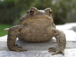 das breite Froschmaul und die großen / grossen Augen wölben sich