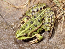 kann einige Minuten unter Wasser bleiben. Da der Wasserfrosch am
