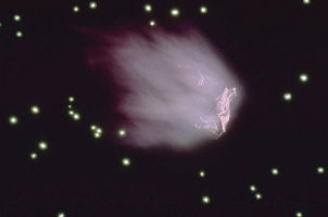 hinter einem Kometen zieht oft eine Staubwolke her und dann fällt manchmal